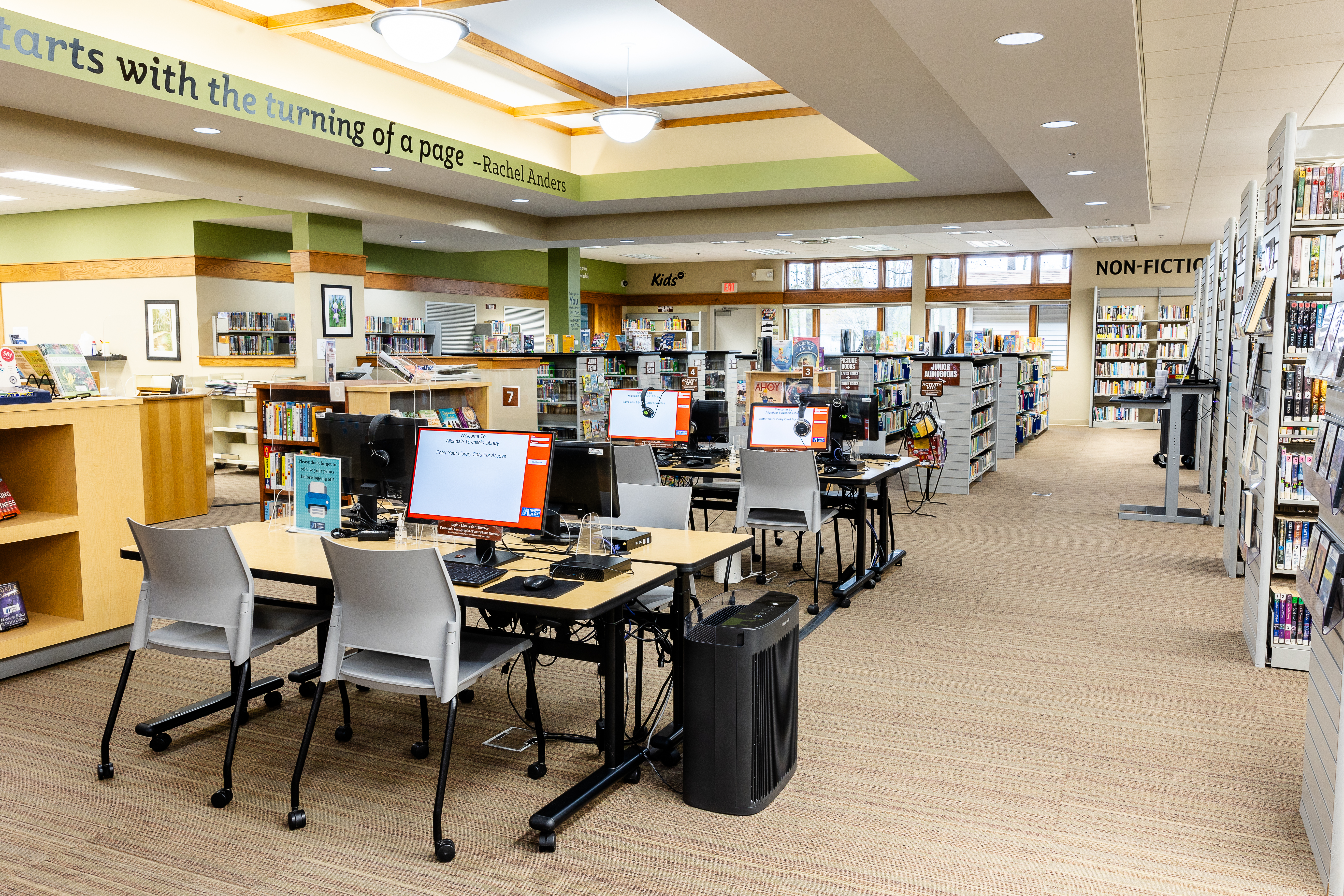 The Allendale Township Library provides access to the Internet as part of its commitment to meet the community’s information needs. The Library is committed to preventing minors from viewing obscene matter, sexually explicit matter harmful to minors, and matter inappropriate for minors. To this end, all Internet access public computers provide filtered Internet access. Filters may be disabled upon request for those 18 and older.