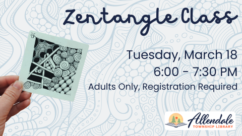 Join us for a Zentangle class to learn how to create abstract art using structured patterns called tangles. Zentangle classes are relaxing and meditative, and they can help improve focus, creativity, and well-being. Adults only. Registration required.